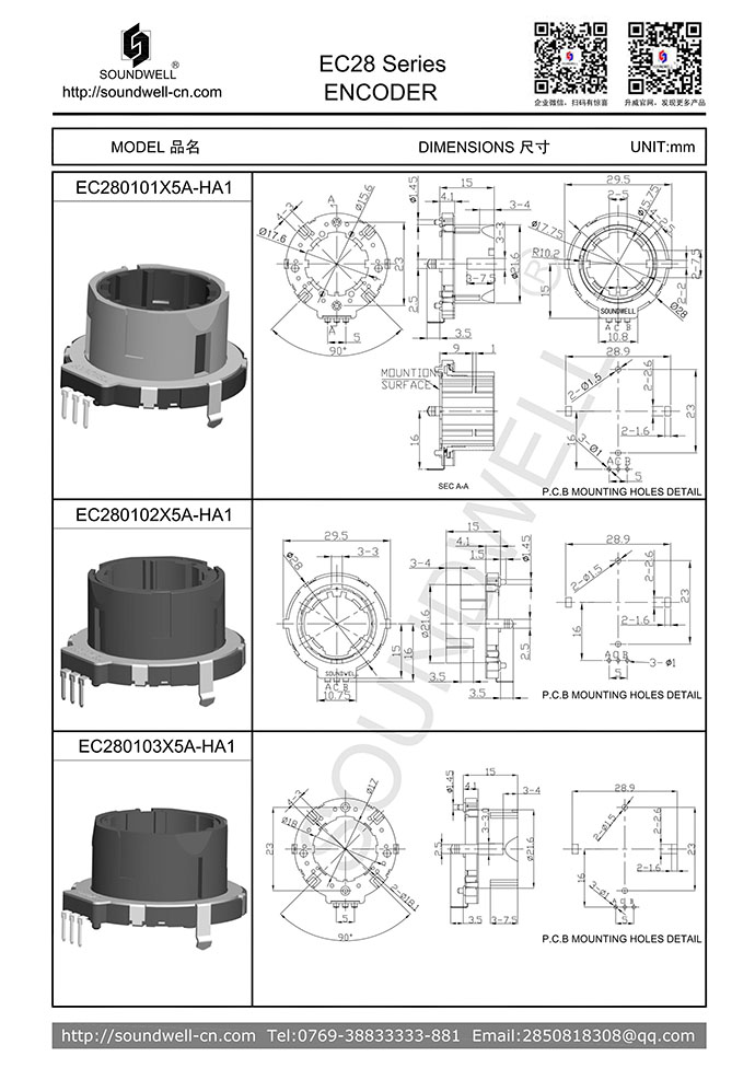 | Main Specifications: | Dimensions: ∮28mm Rated voltage: DC 10V; Number of detent: 18/30; pulses: 15/18; Working temperature: -40°C~85°C; Rotational life: 50,000 cycles Min |