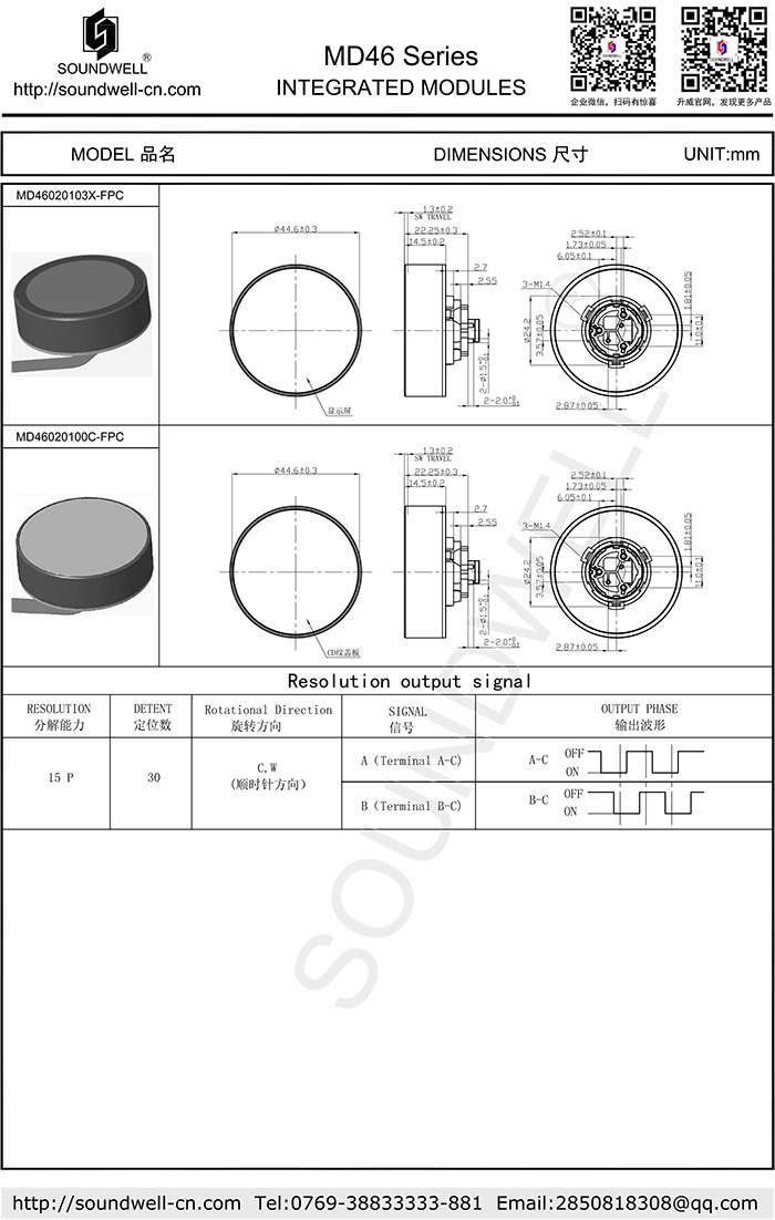 | 主要規(guī)格: | 外形尺寸:46 mm 編碼器定位數(shù):30個定位 編碼器輸出脈沖數(shù):15 Pulses 工作溫度:-20℃~70℃ 旋轉(zhuǎn)壽命:30,000次以上 開關(guān)壽命:30,000次以上; |