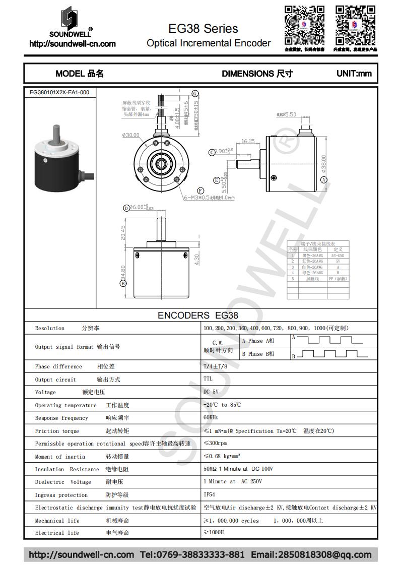 | 主要規(guī)格 | 外形尺寸:38 mm 編碼器定位數(shù):無極旋轉(zhuǎn) 編碼器輸出分辨率:100P、200 P、300 P、360 P、400 P、600 P、720 P、800 P、900 P、1000 P等,具體可定制 工作溫度:-20℃~85℃ 輸入電壓:5V; 防護(hù)等級:IP54 反接保護(hù) 輸出信號:A+、B+ ![]() 絕緣電阻:50M? 1 Minute at DC 100V 耐電壓:1 Minute at AC 250V 旋轉(zhuǎn)壽命:1,000,000次以上 電氣壽命:1000小時以上 |