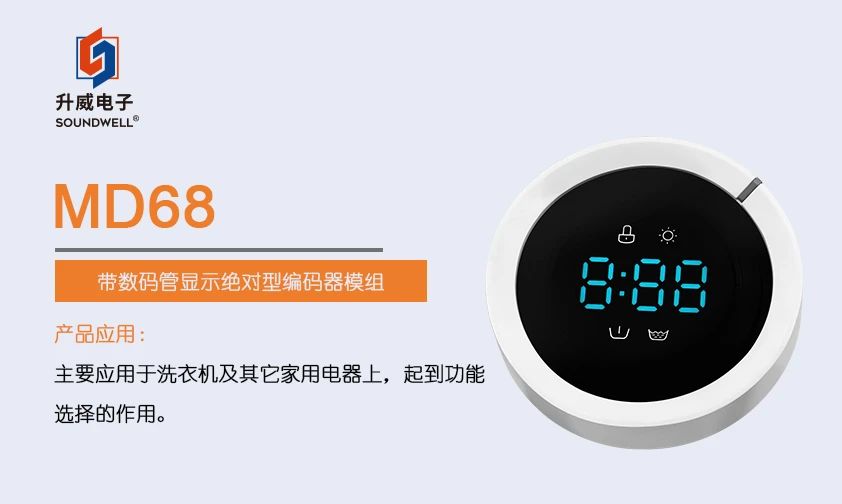 SOUNDWELL的MD68帶數(shù)碼管顯示絕對(duì)型編碼器模組,主要應(yīng)用于洗衣機(jī)、熱水器等白色家電產(chǎn)品上,起到功能選擇的作用。