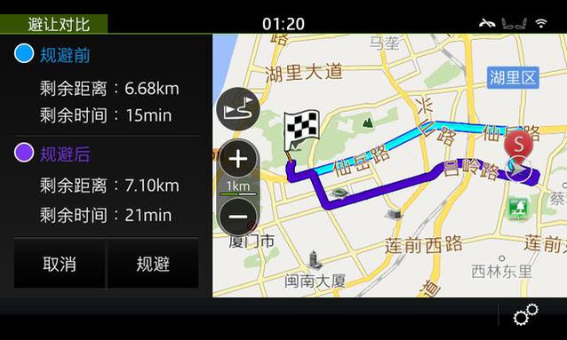 ▲避讓對(duì)比,據(jù)說高德地圖的躲避擁堵功能每個(gè)月可為北京用戶節(jié)省出700年時(shí)間